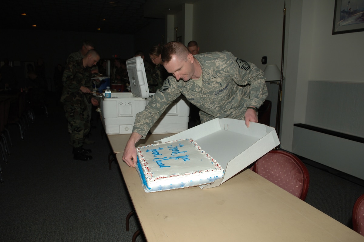 FAIRCHILD AIR FORCE BASE, Wash. -- Airmen, non-commissioned officers and officers recite the Honor Guard Creed during an honor guard graduation ceremony at the Deel Community Center here Feb. 15. Chief Master Sgt. Robert Gaylor (ret.), the fifth Chief Master Sergeant of the Air Force, and his wife were honorary guests at the graduation. (U.S. Air Force photo / Senior Airman Jocelyn Ford)