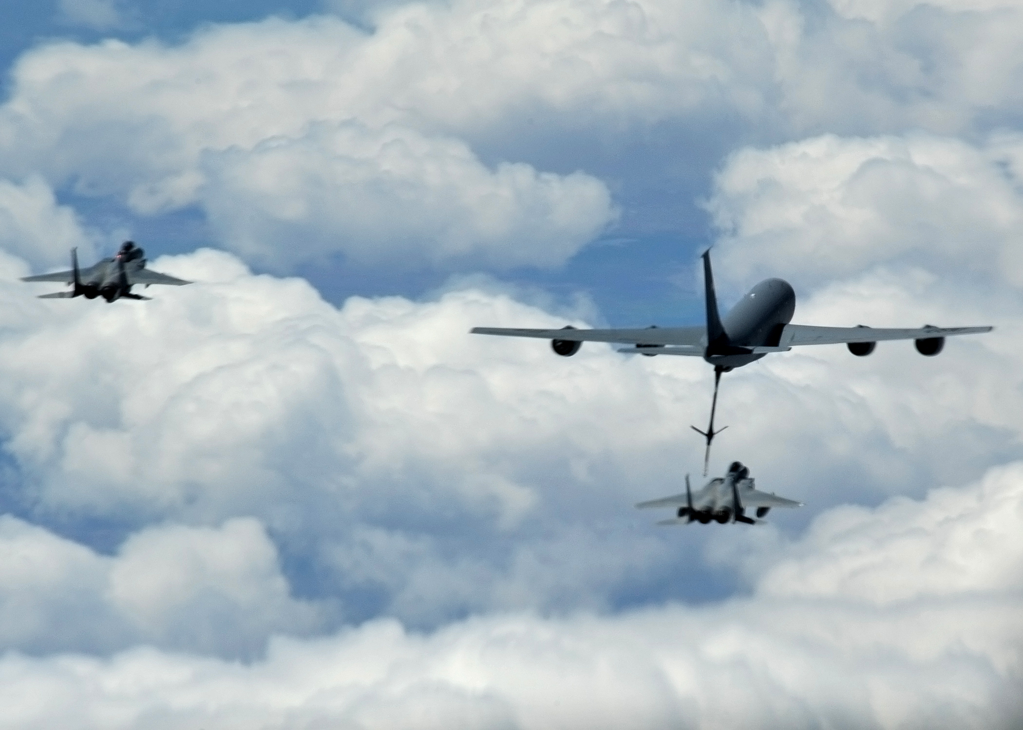 A group of 30 civic leaders saw an F-15C Eagle fly alongside a KC-135 Stratotanker while another F-15 was being refueled. (U.S. Air Force photo/ Staff Sgt. Michael Means)