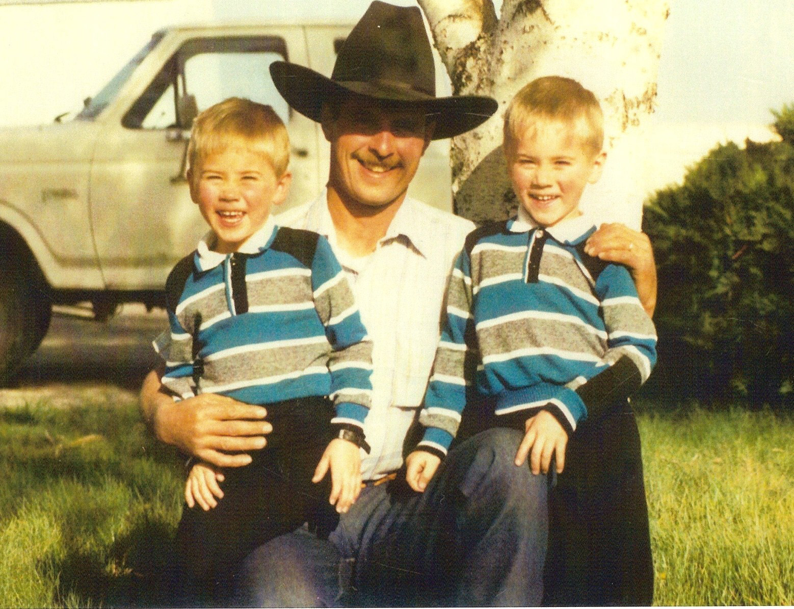 Cody and Christopher Engelke sit with their father, Hans-Joachim, in Basin City, Wash. in 1986. They were 3 years-old at the time. (Courtesy photo)
